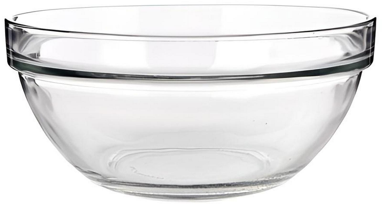 Skleněná miska o průměru 23cm je vyrobena z čirého, hladkého skla a svým tvarem umožňuje skládat misky na sebe, jednotlivé kusy do sebe perfektně zapadají a zabírají minimum místa v kuchyni.