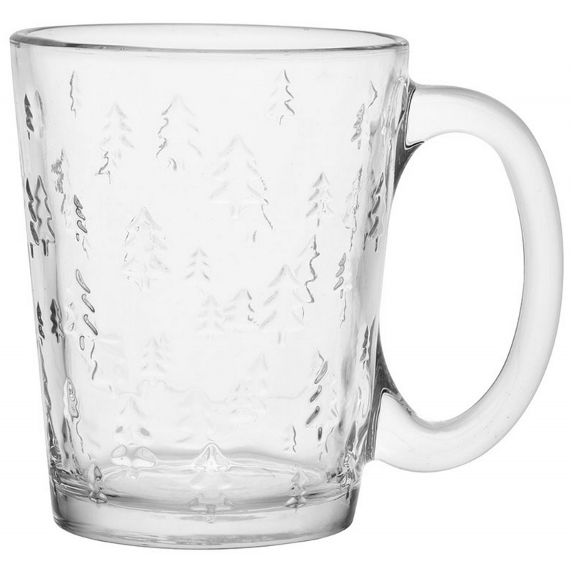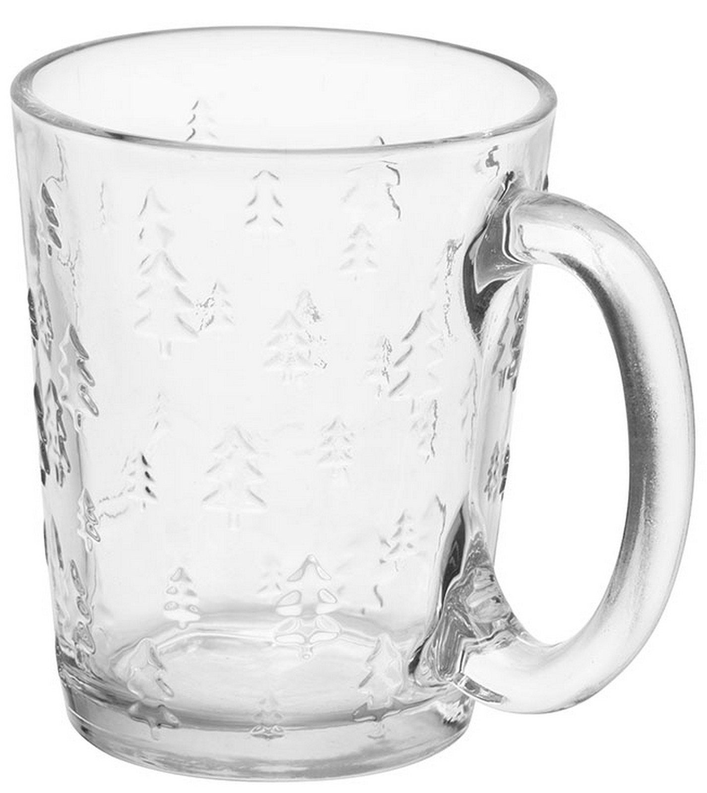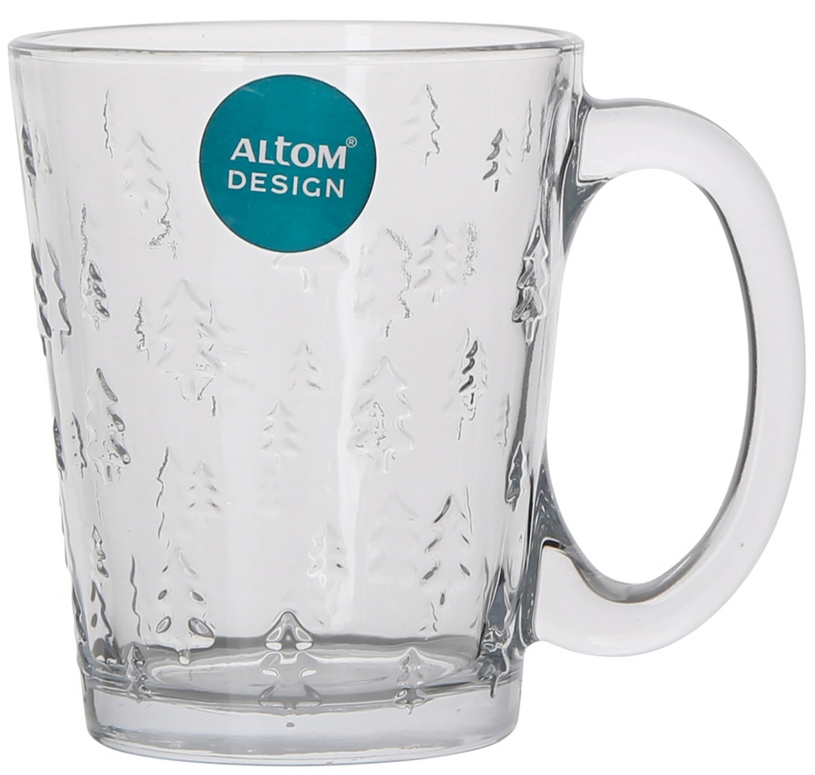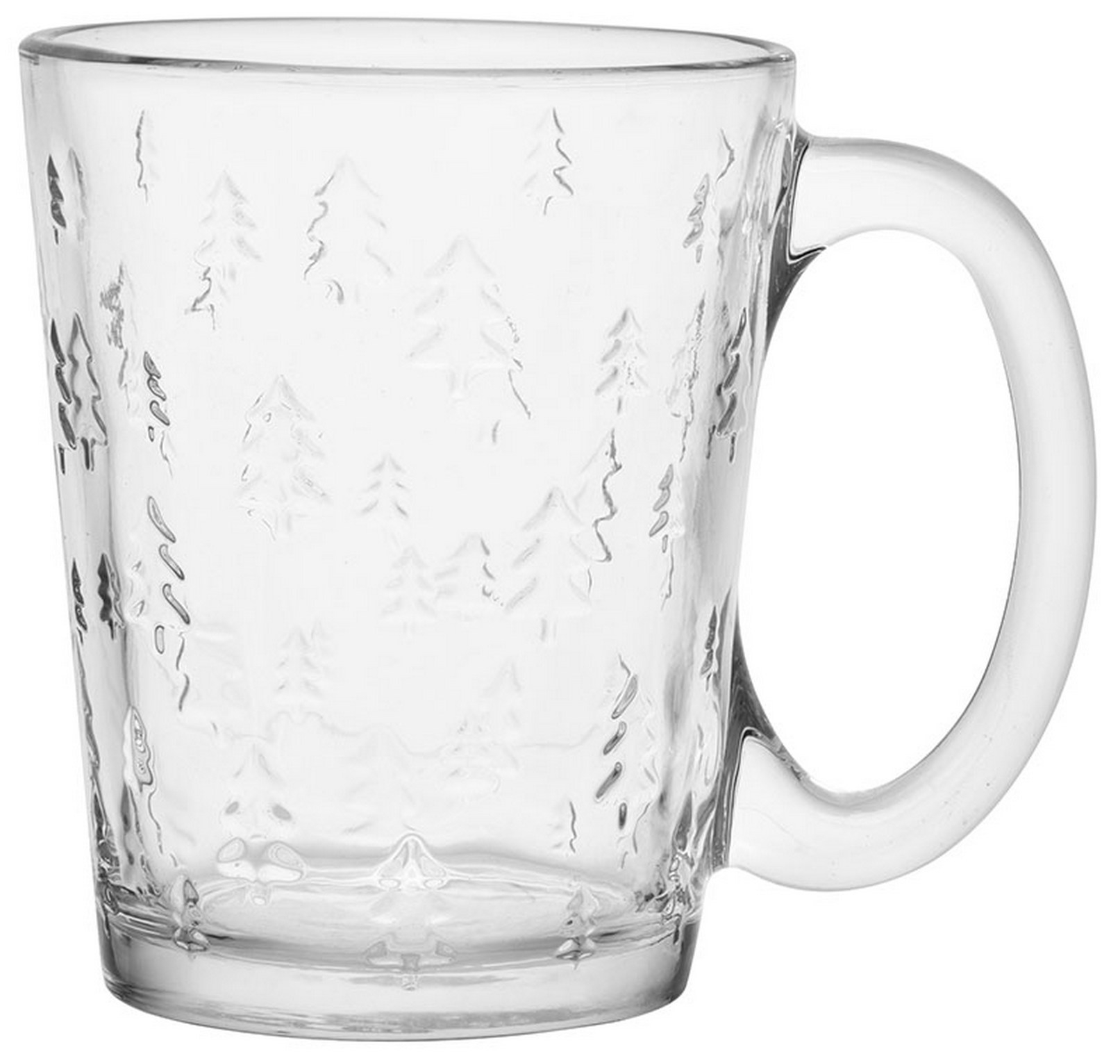 Skleněný hrnek s motivem stromků o objemu 300 ml, průměr 8,3, výška 10 cm.