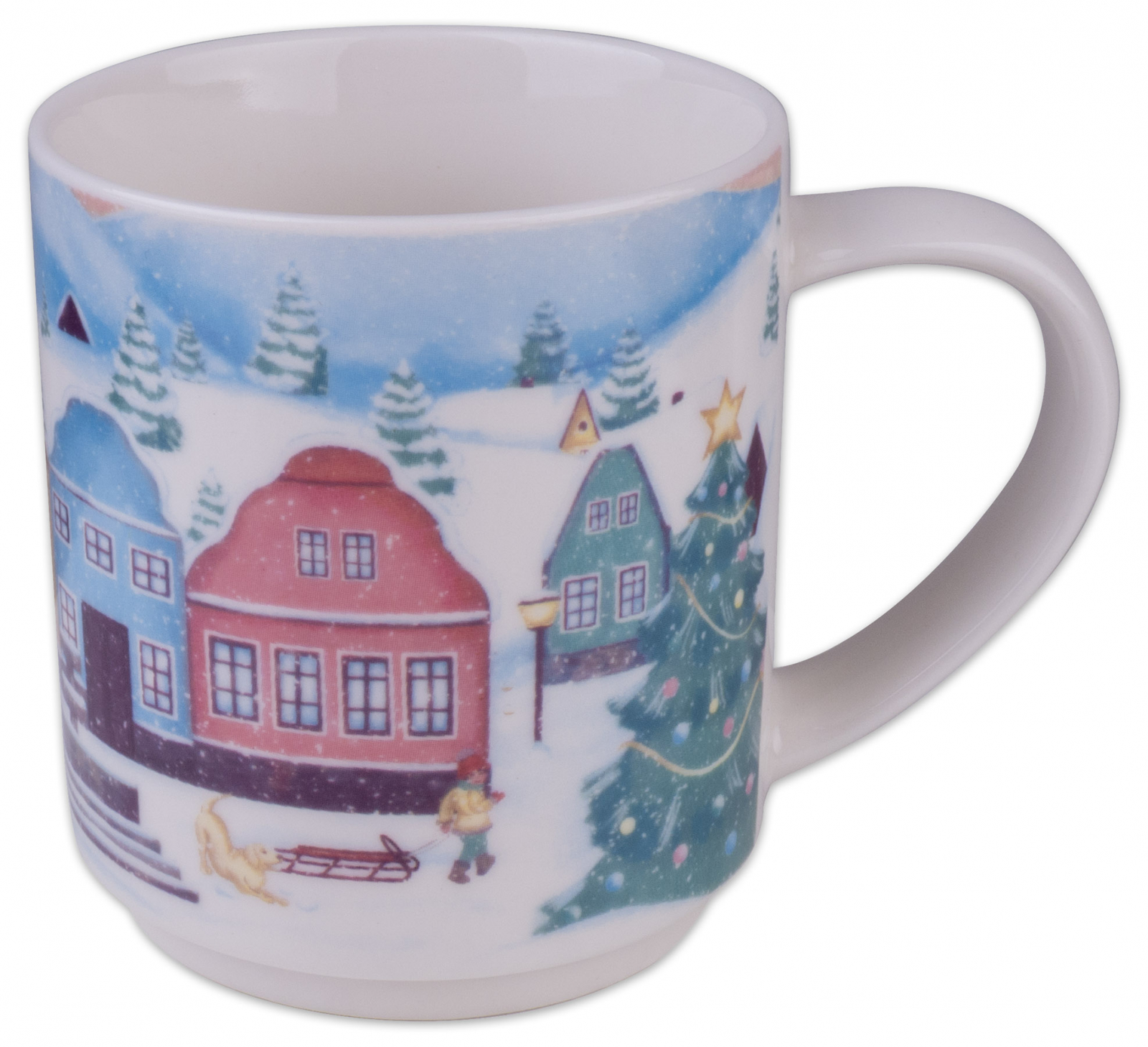 Keramický hrnek s dekorem vesničky o objemu 270 ml, rozměry (š x v x h): 11 x 9 x 8 cm.