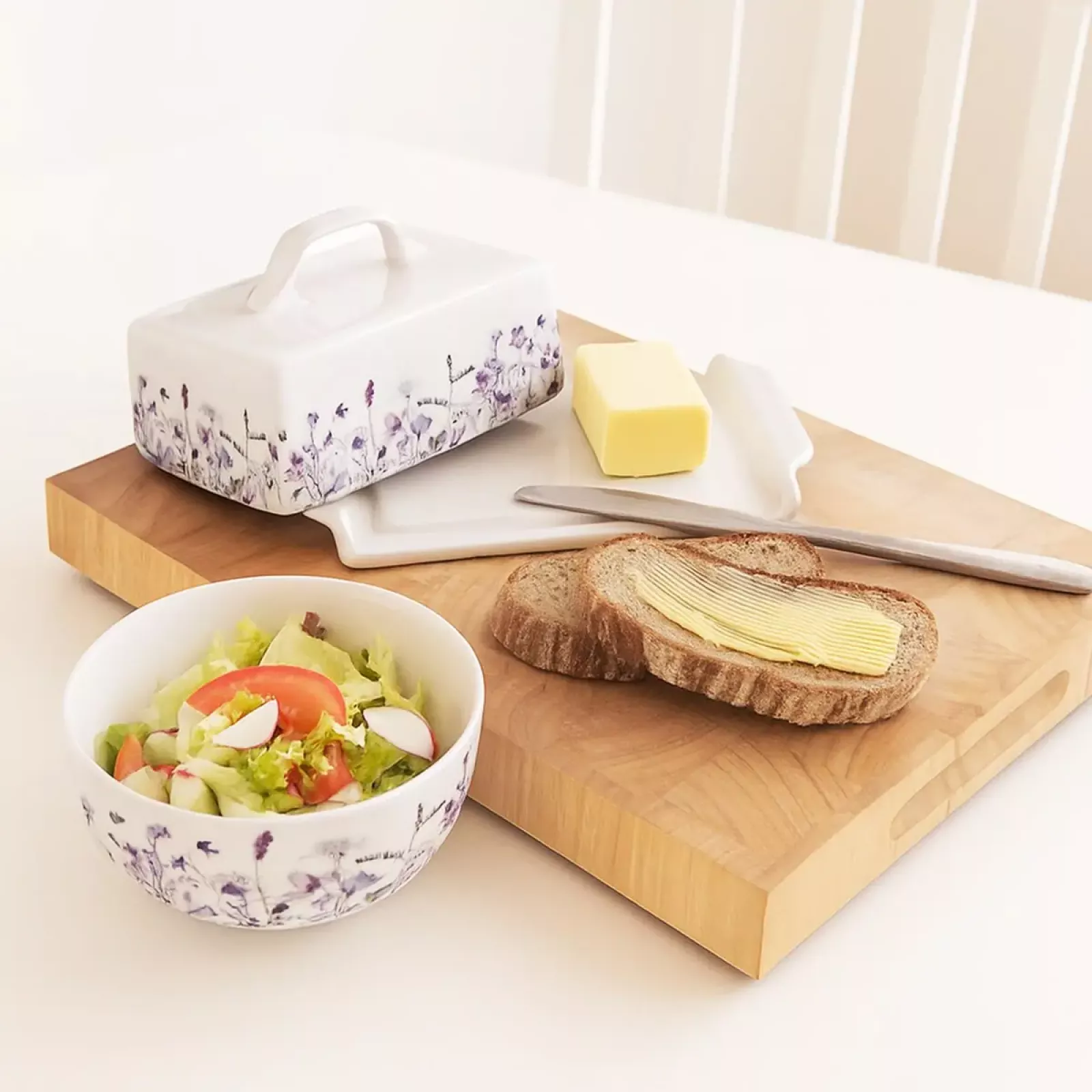 Máslenka s dekorem LOUKA na uložení másla v chladničce je vhodná i na servírování při snídani. Materiál: porcelán. Rozměry: 20x11,5x8,5 cm. Je vhodná do myčky nádobí.