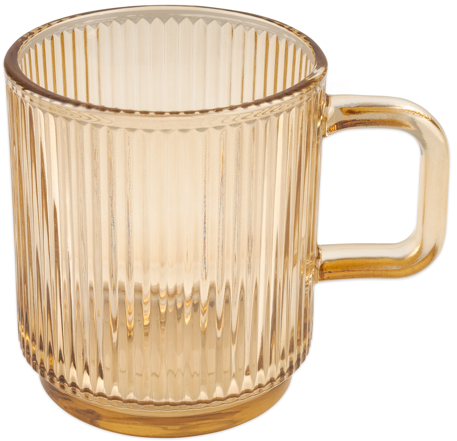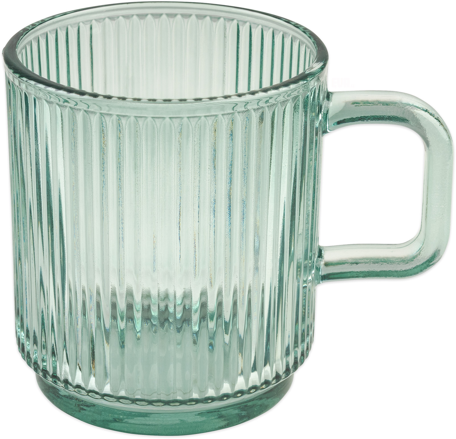 Hrnek z vysoce kvalitního sodného skla odolného vůči poškrábání a změnám teplot. Vertikální drážky na povrchu hrníčku. Objem 340 ml, rozměry : šířka 8,5 cm, výška 9,5cm.
