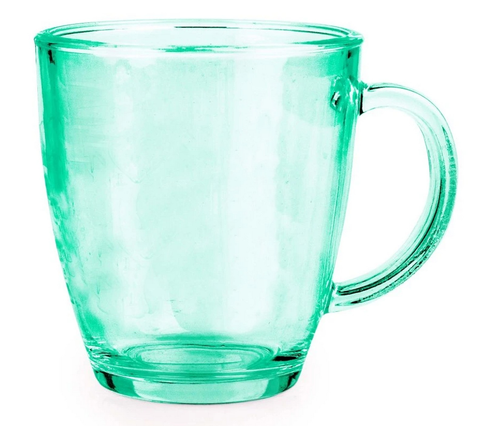 Skleněný hrnek o objemu 365 ml, průměru 9 cm a výšce 10 cm, mix barev, dodáváme dle skladové dostuponosti.