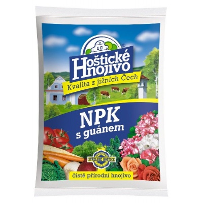Hoštické NPK hnojivo je čistě přírodní - organické hnojivo bez přídavku průmyslově vyráběných složek. Hnojivo obsahuje přírodní guáno, pocházející z trusu mořských ptáků, základní živiny NPK a další stopové prvky. Hodí se nejen pro univerzální pužití v celé zahradě, ale obzvláště pro zdravou výživu ovoce a zeleniny. Rovněž je velmi vhodné k základnímu vyhnojení půdy buď na jaře, nebo při podzimní přípravě.Hnojivo se aplikuje na povrch zeminy rozhozem a pak se mírně zapraví do půdy a dostatečně zavlaží. Při aplikaci do truhlíků a dalších nádob se promíchává při výsadbě s pěstebním substrátem.