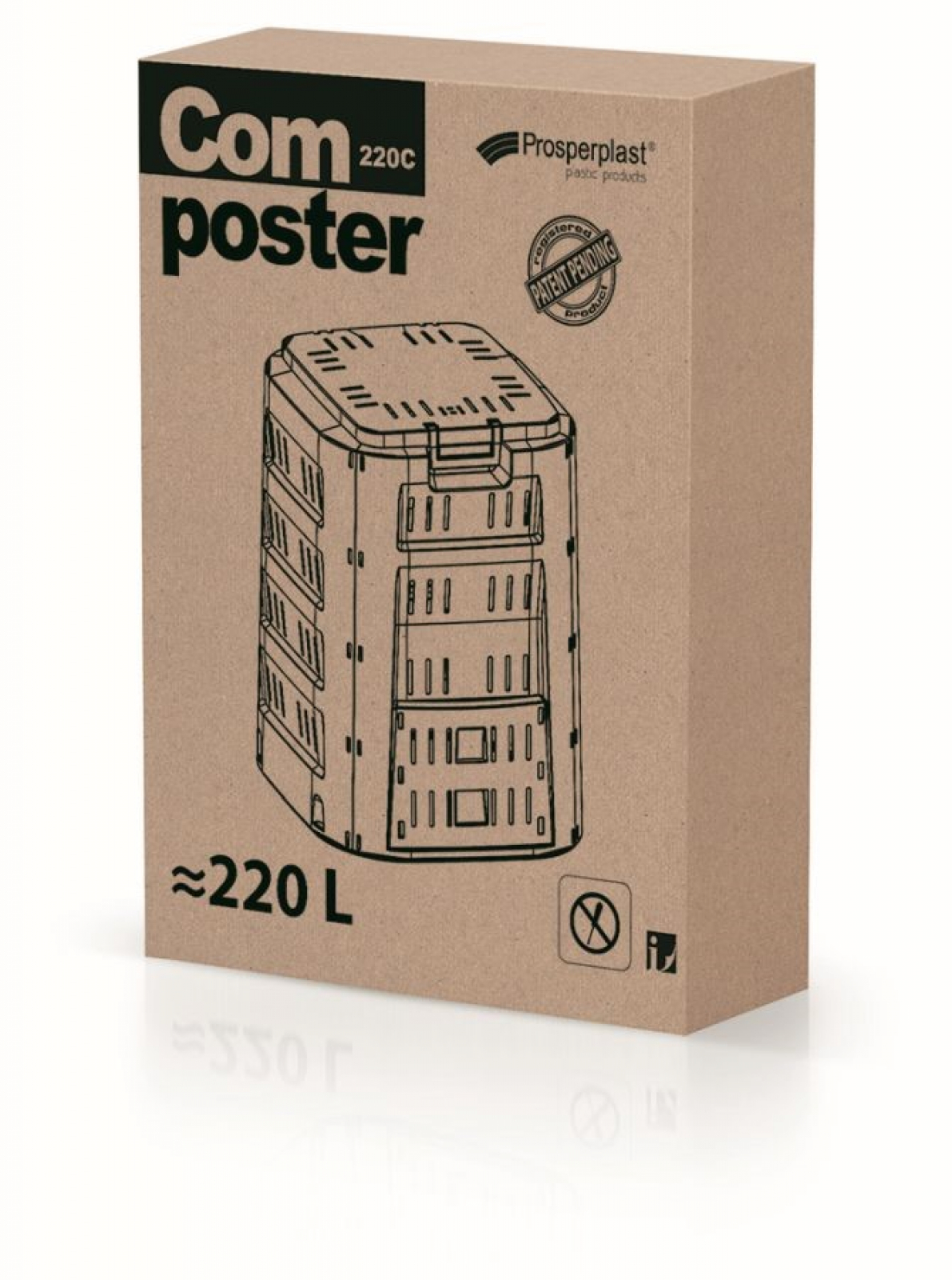 Kompostér je vyroben z omyvatelného plastu a vyznačuje se především výborným systémem provzdušňování. Kompost z tohoto kompostéru je plnohodnotný a vzniká až 5x rychleji. Je snadno přenosný, složitelný a má velmi jednoduchou konstrukci. Kompostér nemá dno, takže má přímý styk s p celý popisůdou v které jsou červy a organismy, které se podílí na tvorbě humusu. Plní se shora a po bocích má otvory a přívody pro vzduch. Rozměry 61x75x61 cm. Hmotnost cca 3,78 kg.