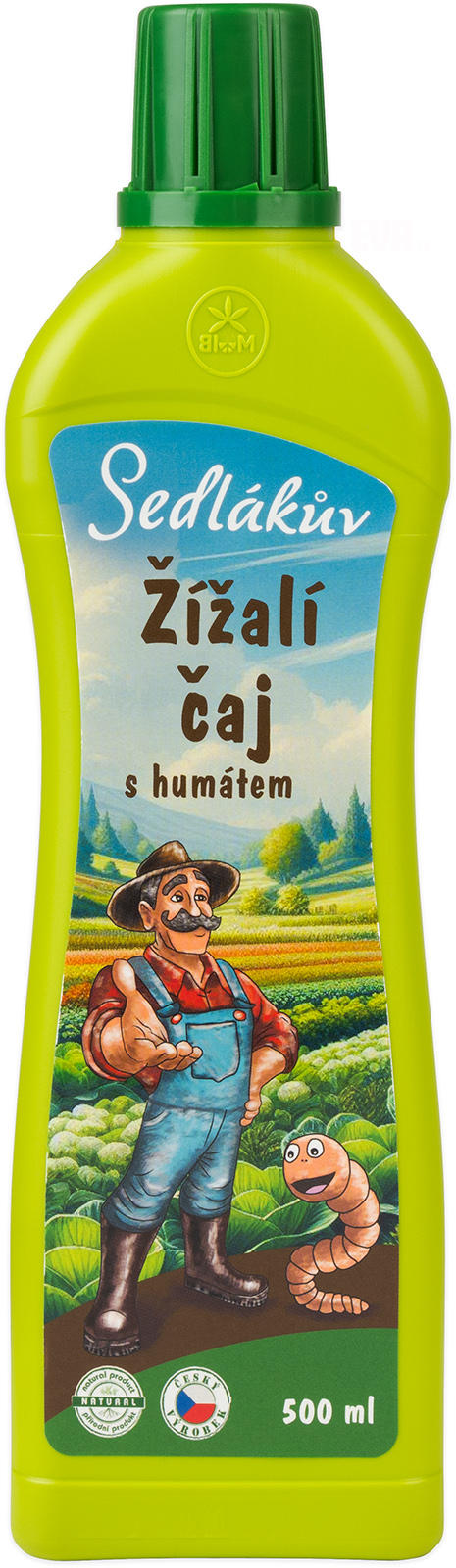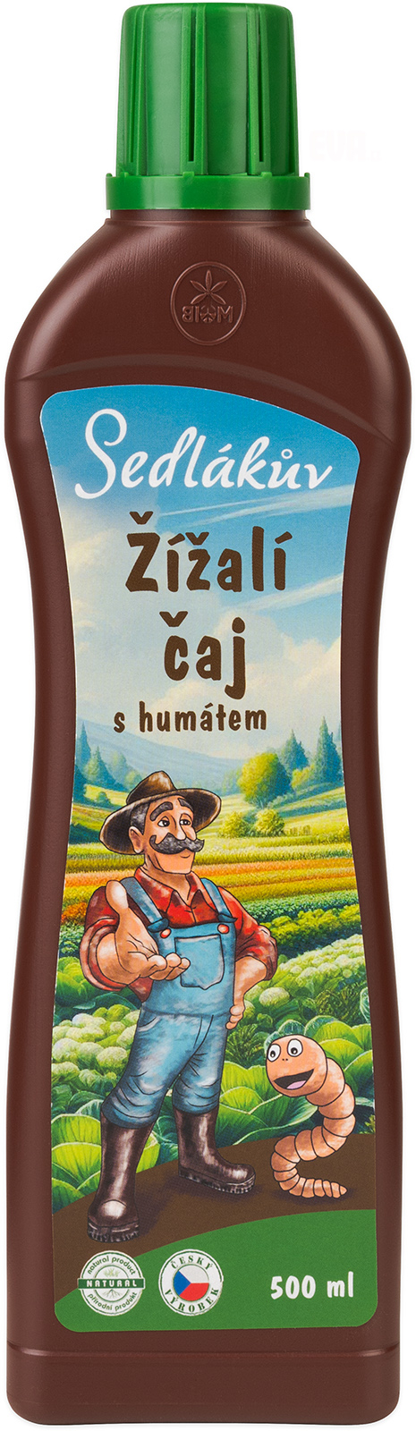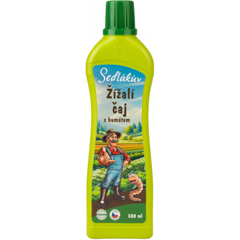 Sedlákův žížalí čaj s humátem je přírodní rostlinný biostimulant vyrobený z vermikompostu kalifornských žížal a obohacený přírodním humátem z leonarditu (organická neprouhelnatělá hmota). Určen pro venkovní pěstování všech druhů rostlin, zejména pak užitkových, jako jsou rajčata, celý popis papriky, okurky, dýně, cukety, brambory, drobné ovoce, ovocné stromy a keře, dále révy vinné a rostlin na živých fasádách a střechách objektů. Zlepšuje: vlastnosti půdy a obohacuje jí o živiny, schopnost půdy zadržovat vodu, odolnost rostlin proti abiotickým sresům, stimuluje biologický život v půdě, příznivě působí na vývoj kořenů a celkovou kondici rostlin, zabraňuje degradaci půdy, vhodný pro ekologické zemědělství, nezávadný pro hmyz. Složení: dusík jako N min. 0,06%, draslík jako K2O min. 0,5%, sušina min. 2,37%, huminové látky min. 0,85%, hodnota pH 7,5-9,5.Doporučené dávkování: zálivka: 25ml/1l vody v intervalu 1x týdně, postřik na list: 10ml/1l vody v intervalu 1x týdně, objem po okraj naplněného víčka