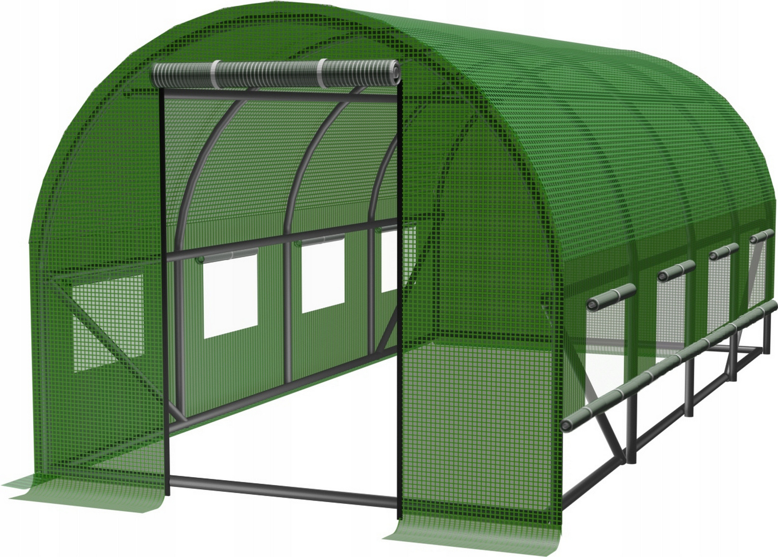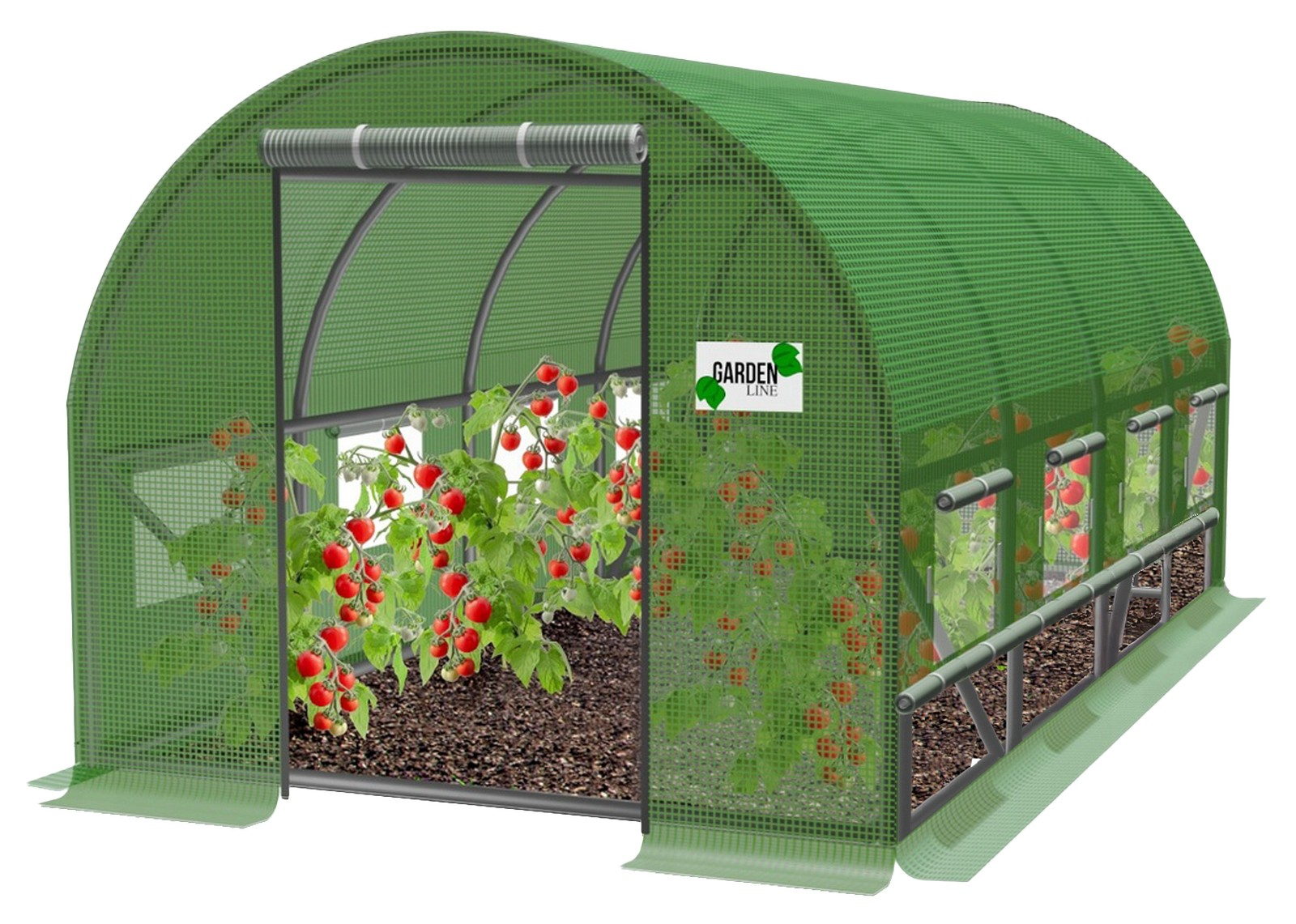 Robustní pozinkovaná konstrukce: Rám je tvořen ocelovými trubkami s oboustranným zinkováním. To zaručuje absolutní odolnost proti korozi ve vysoce vlhkém prostředí, které uvnitř fóliovníku přirozeně vzniká.