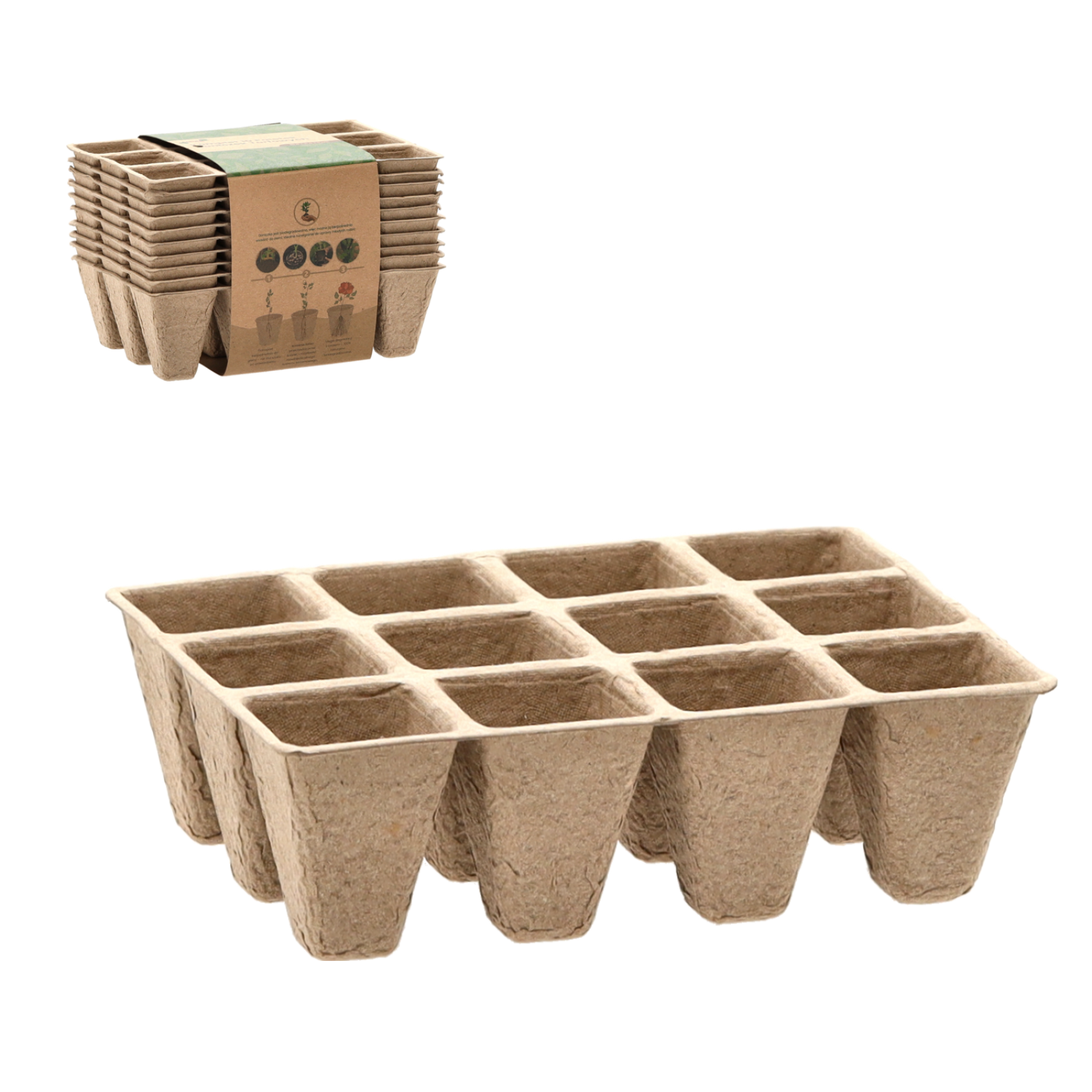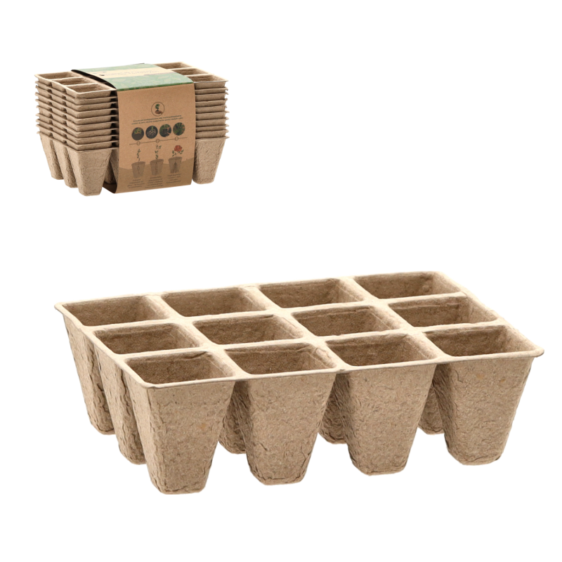 Výsevové plato, sadbovač, 12 buněk, rozměr buňky 3,5 x 3,5 cm, rašelinové. Výška buňky je 5cm. Rostlinku vsadíte do půdy i s kelímkem, který se časem rozloží. Při přesazování z jednoho místa na druhé se tak odstraní šok, který by jinak rostliny mohly prodělat. Rostliny dosahují d celý popisobrého růstu, mají vyšší kvalitu a výnosy.