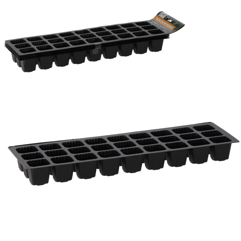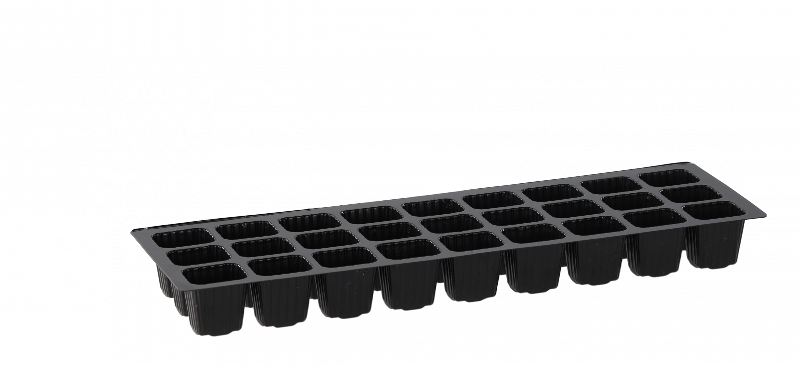 Sadbovač, 27 buněk, rozměr buňky 3,5 x 4,5 cm, černá barva. Výška buňky je 4,5cm.