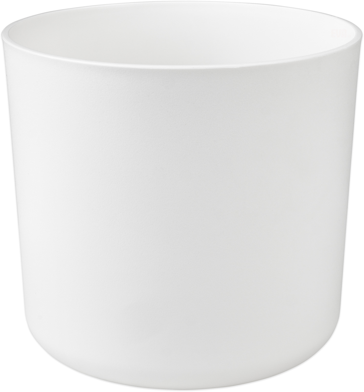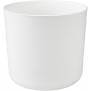 Dekorativní plastový obal s čistým jednoduchým tvarem, průměr 14cm, výška 13cm. Vhodný pro vnitřní i venkovní použití. Barva bílá.