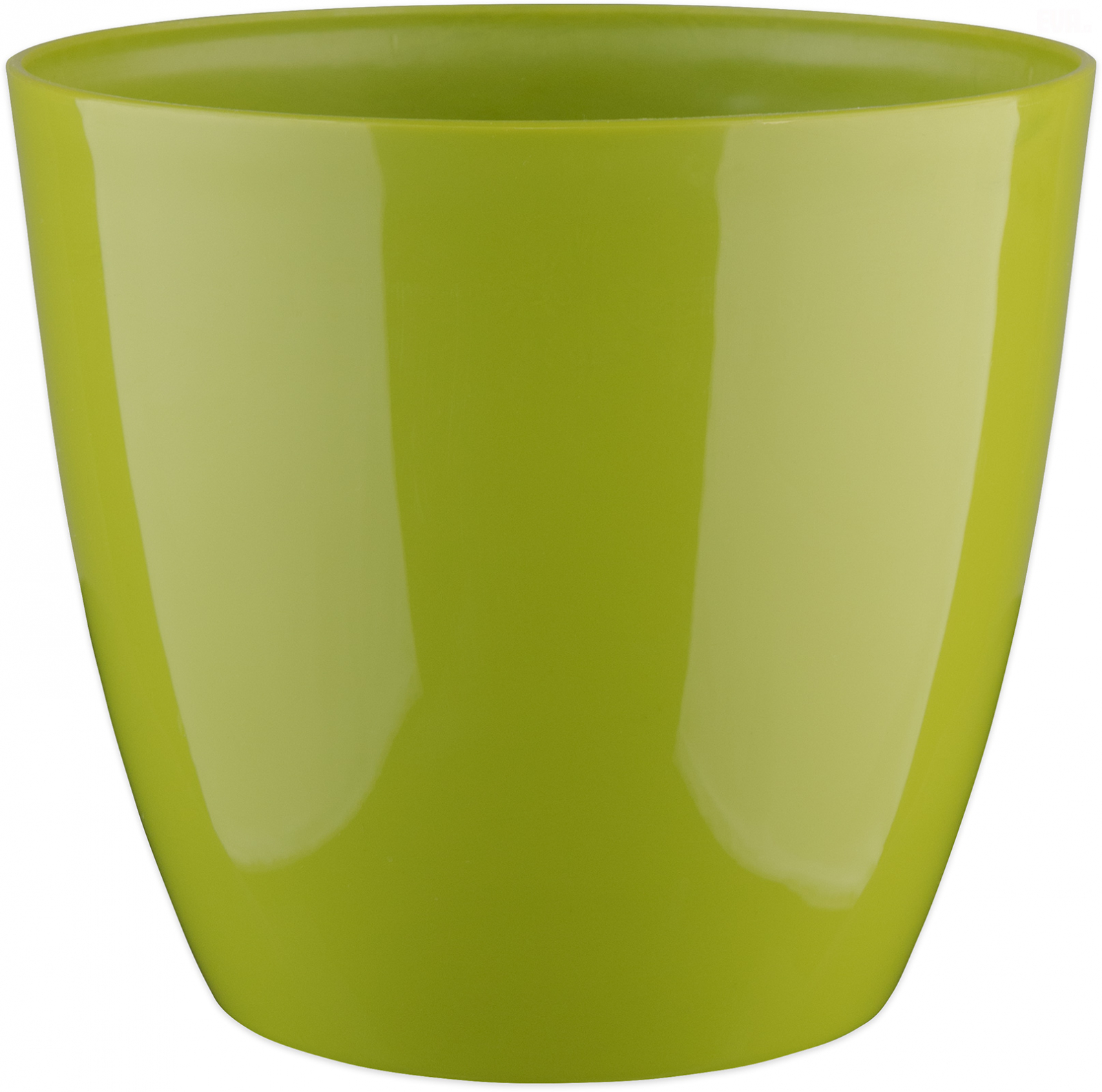 Plastový kónický obal na květináč, horní průměr 13,1 cm, spodní 11,5 cm. Barva zelená.