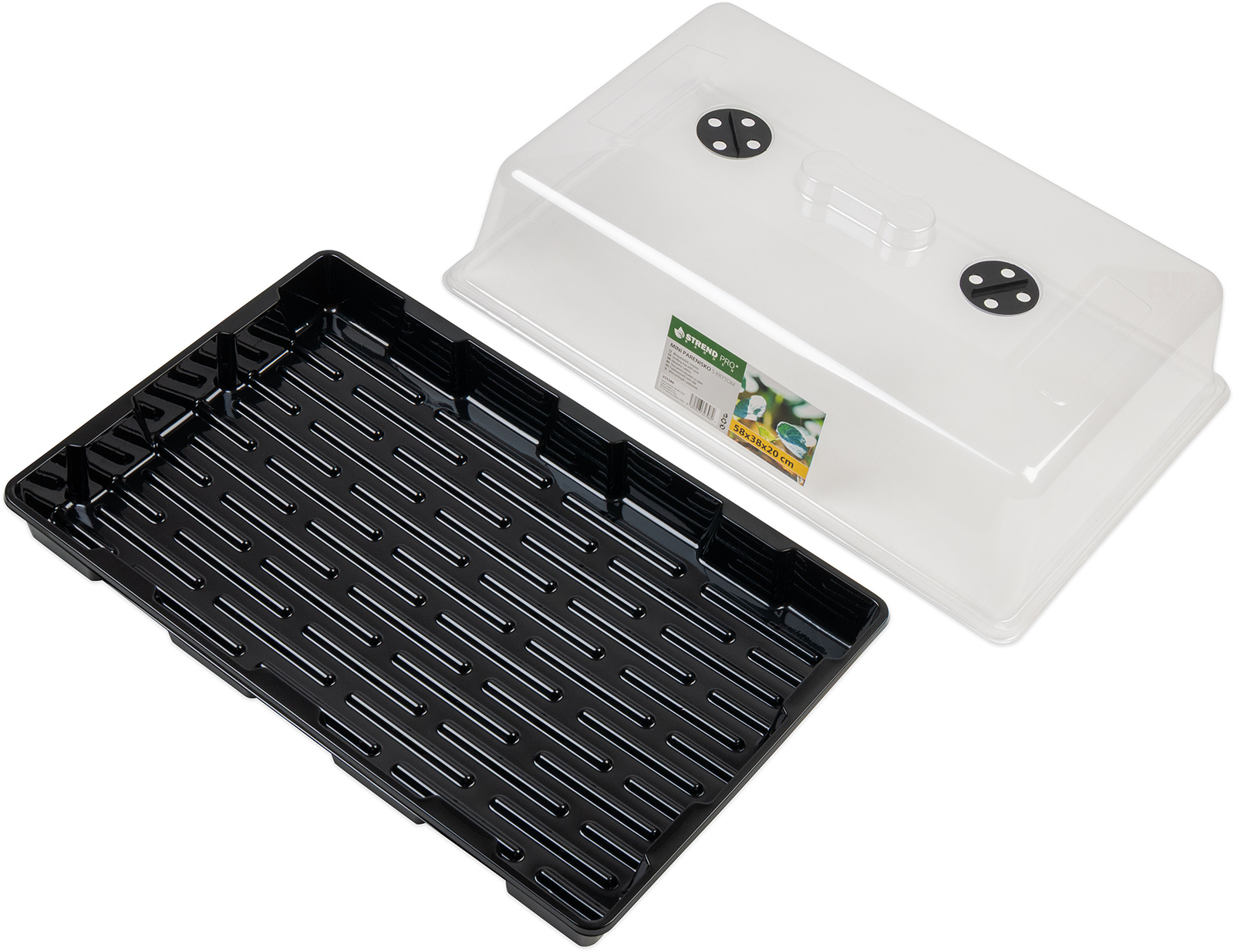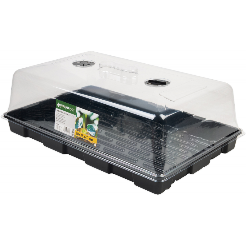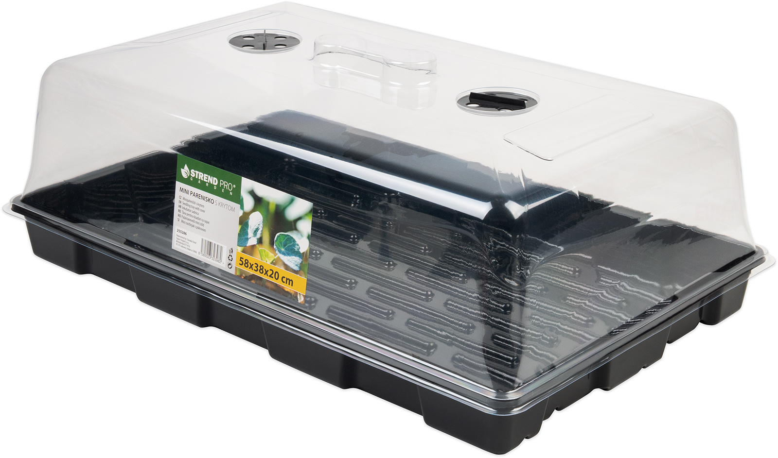 Minipařeniště je vhodné pro výsev, předpěstování sadby nebo řízkování rostlin. Rozměr: 58x38cm Výška 20cm. 2 větrací otvory. Po výsevu či výsadbě rostlin květníky umístíme na světlé a teplé místo. Substrát, zejména v počátečním stádiu pěstování, udržujeme stále vlhký a zamezíme v celý popisysychání nebo přemokření. Později zabezpečíme pravidelnou ventilaci vzduchu, aby nedocházelo k napadení rostlin chorobami a sadba byla otužilá. Rozměr: 58x38cm Výška 20cm.