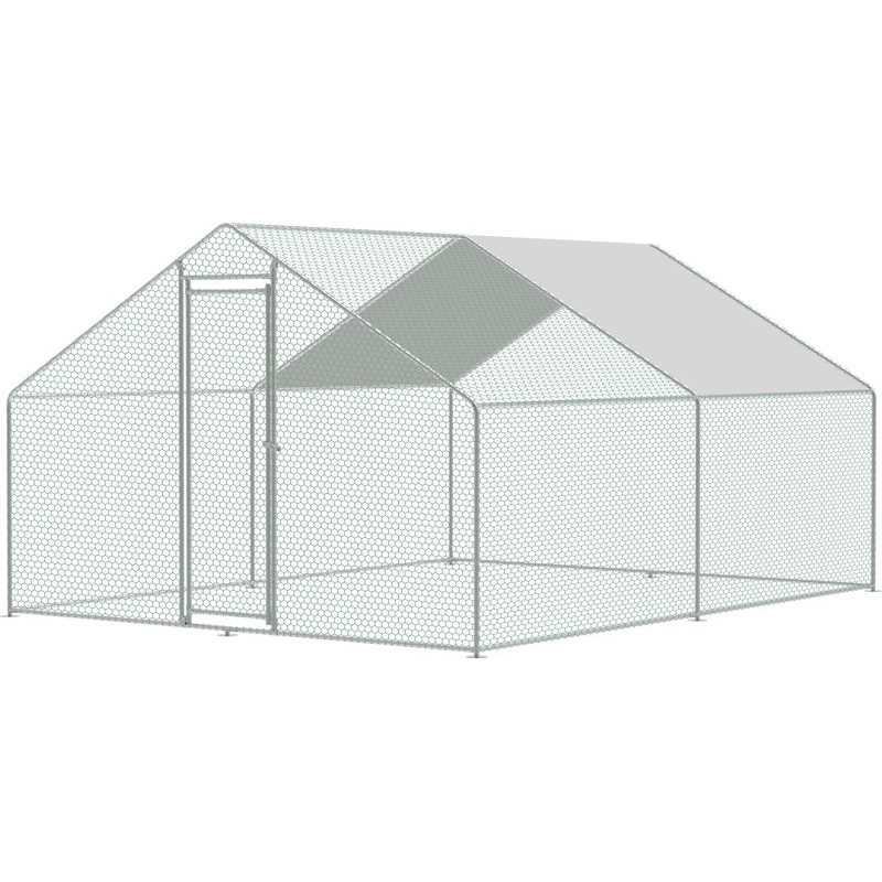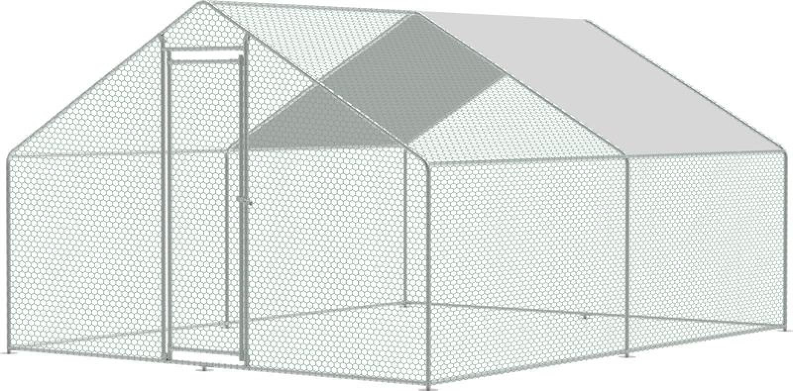 Venkovní voliéra pro drůbež s robustní konstrukcí z galvanizované oceli, celkové rozměry (š x h x v): 3 x 4 x 2 m, ochranné pletivo s velikostí oka 30 x 40 mm a tloušťkou drátu 1 mm, součástí balení voděodolná střešní plachta s UV filtrem pro stínění a ochranu před deštěm, uzamyk celý popisatelná vstupní dvířka pro snadný přístup, kotvící prvky pro zajištění stability v zemi, montážní příslušenství včetně stahovacích pásek.