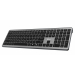 Bezdrátová klávesnice s tichým chodem disponuje 104 nízkoprofilovými klávesami a numerickým blokem, připojení zajišťuje bezdrátová technologie 2,4 GHz s USB 2,0 přijímačem a funkcí Plug & Play, zařízení je plně kompatibilní s operačními systémy Windows 10, 11 a Mac, napájení probíhá přes jednu 1,5 V AAA baterii, která není součástí balení, rozměry (š x v x h): 447 x 22 x 126 mm, hmotnost 0,35 kg.